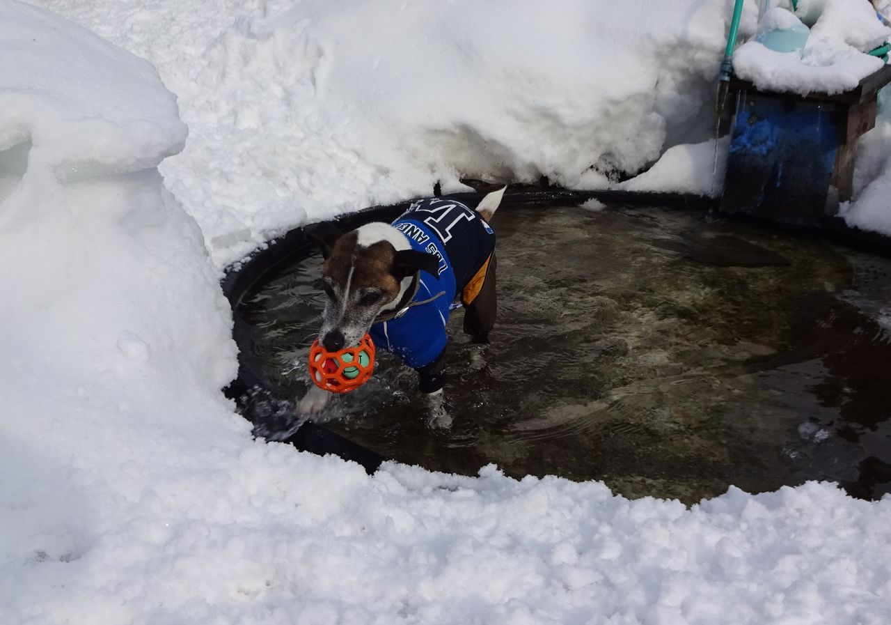 プールに落ちたボールをとりたい僕 ダンの応援を受けてガンバ・・・