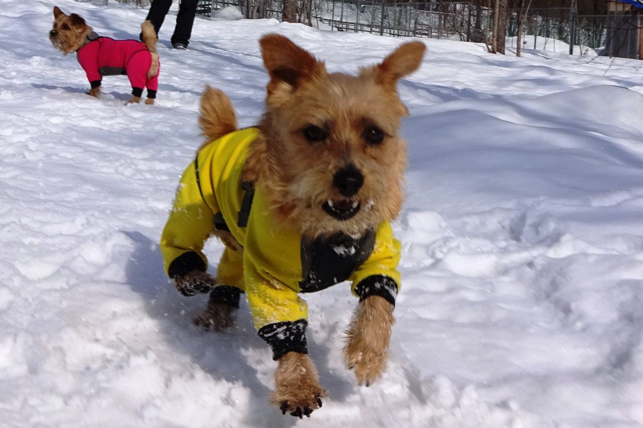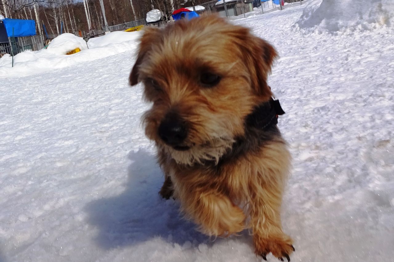 顔に雪つけながら
