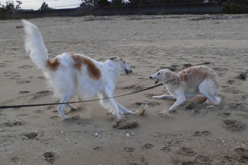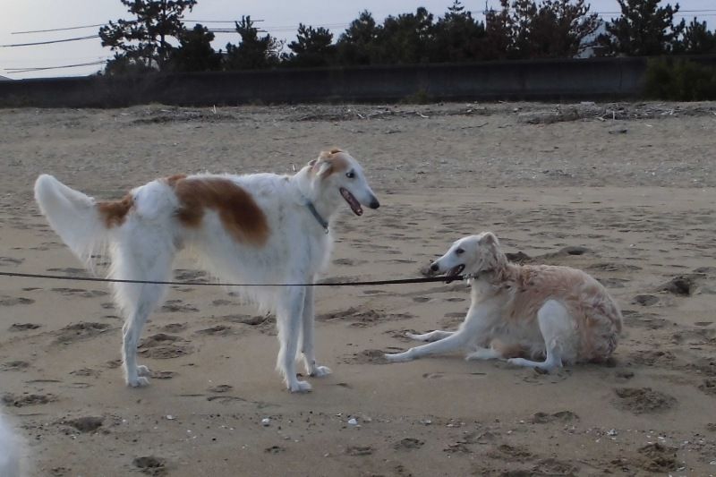 海岸でカイ君を放流すると、帰ってくるまでずっとカイ君を見つめているのだ