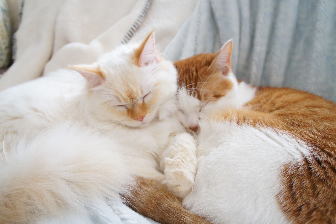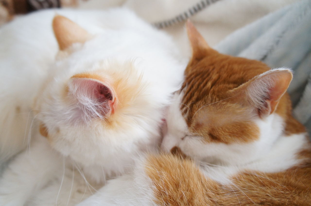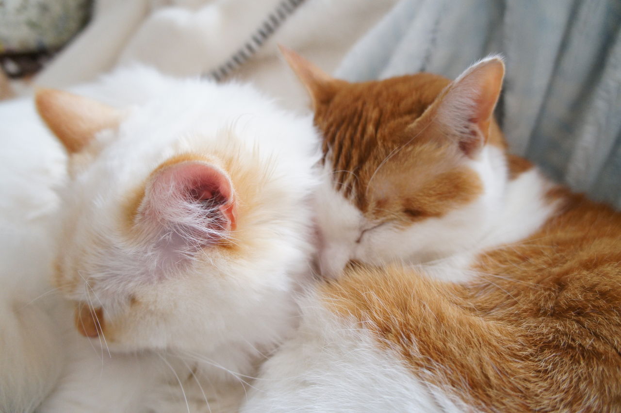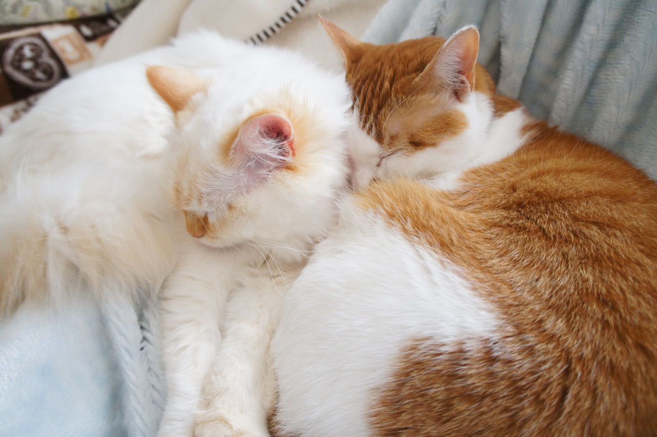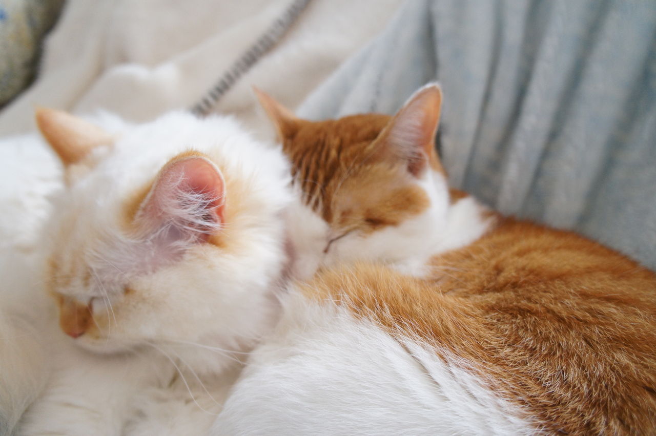ほぼシンメトリーの状態で、寄り添う空たんと海ちゃんです。
