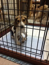 手の曲がった ビーグルの子犬