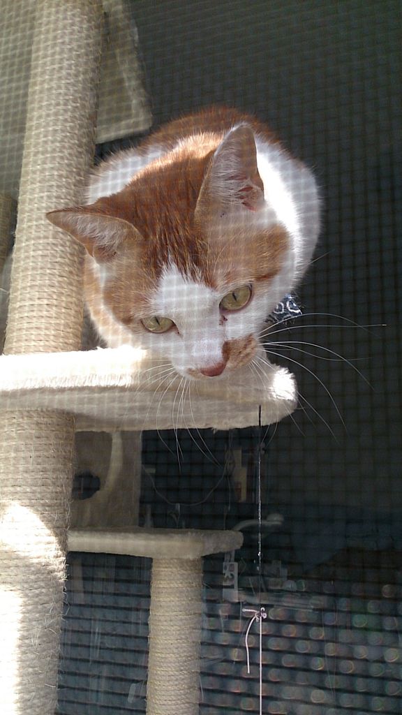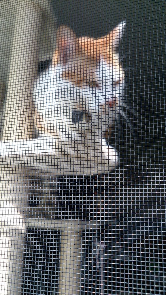 ベランダで、洗濯物を干していたら、網戸越しにバッチリと目が合いました。