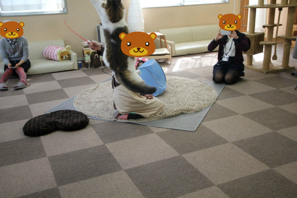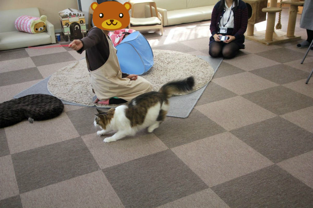 スタッフとださんがハルキをじゃらしています。