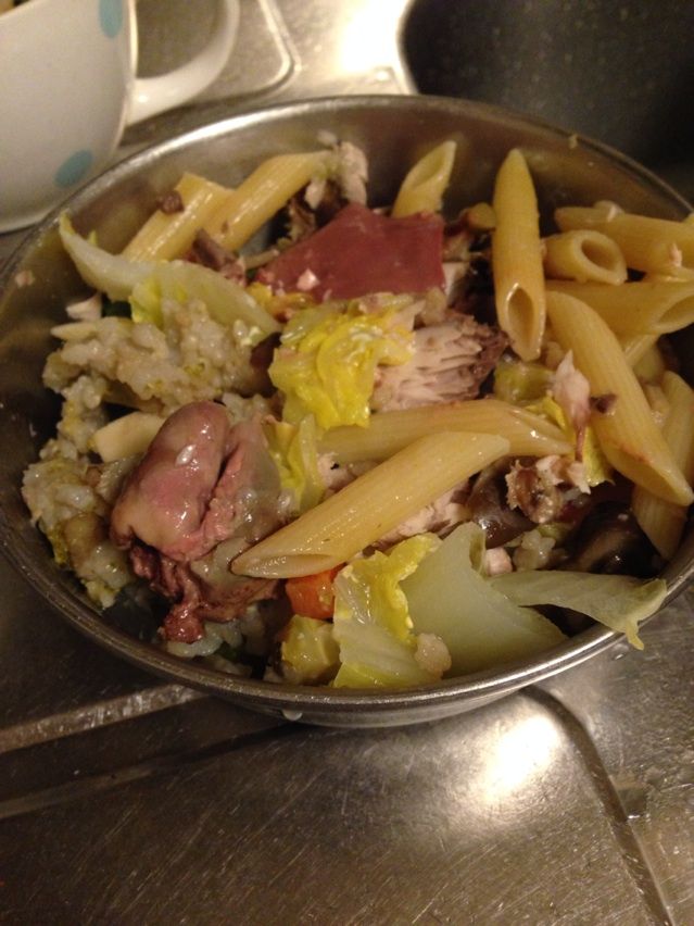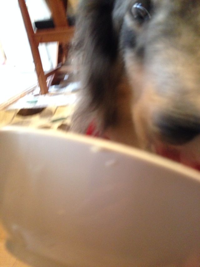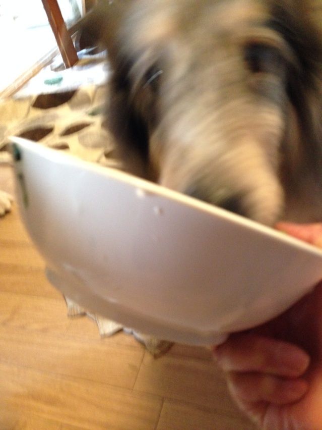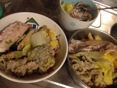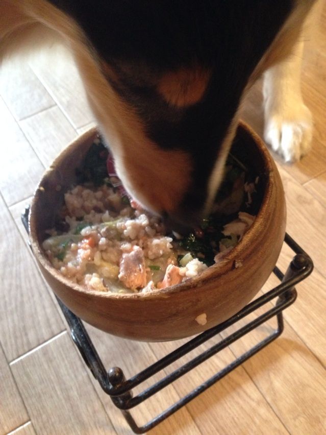さすがに「食べ盛り」は過ぎたかちら?の若いラブ・コリーのミロちゃんと14才のらこちゃんが見た目変わらないくらいのごはん。