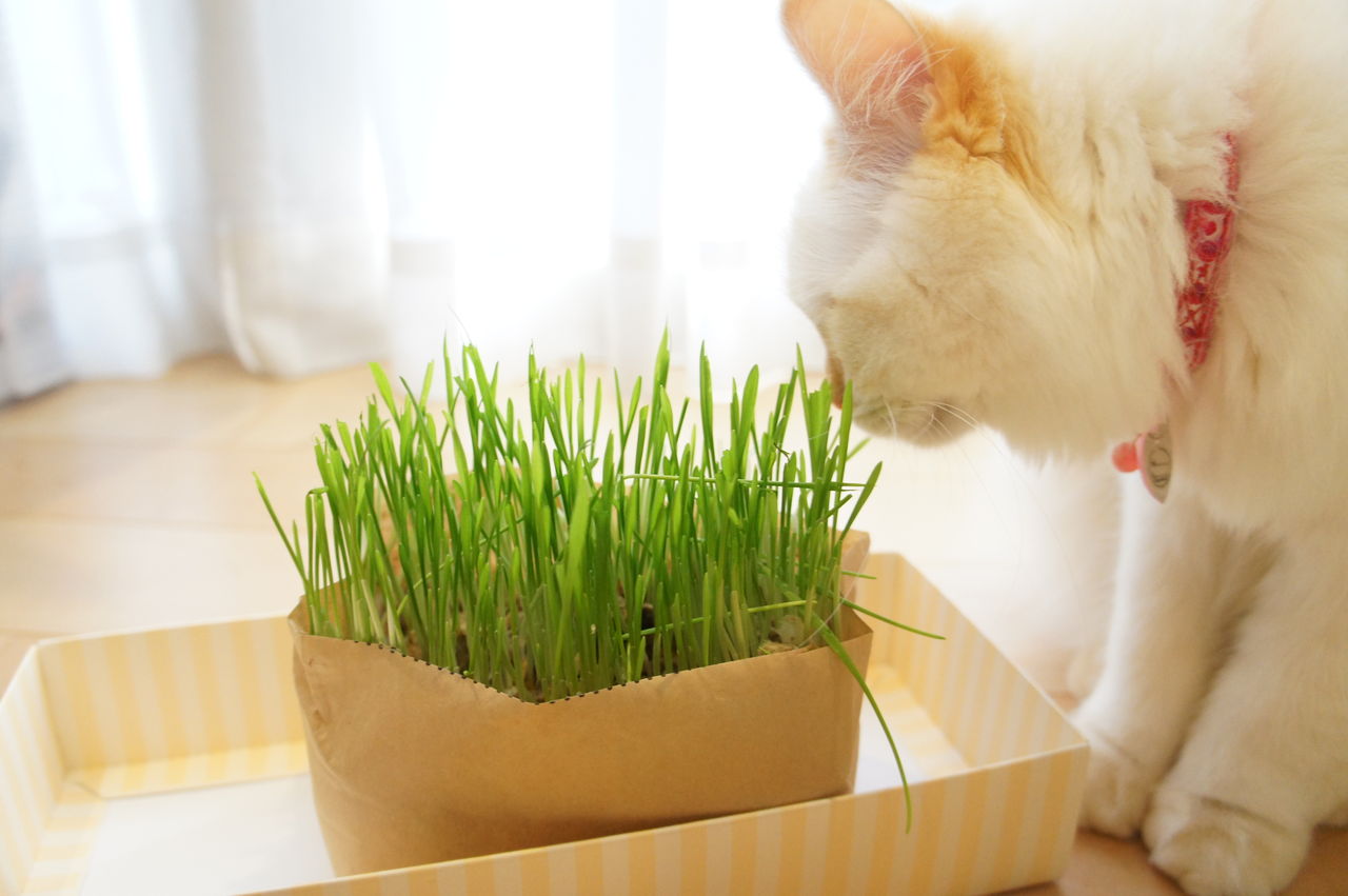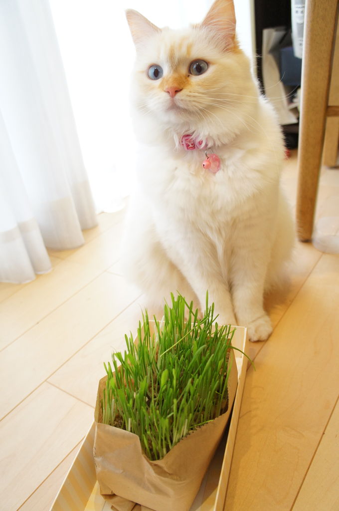 猫に食べられるための草とはいえ、この時期の緑の植物は、癒されます。