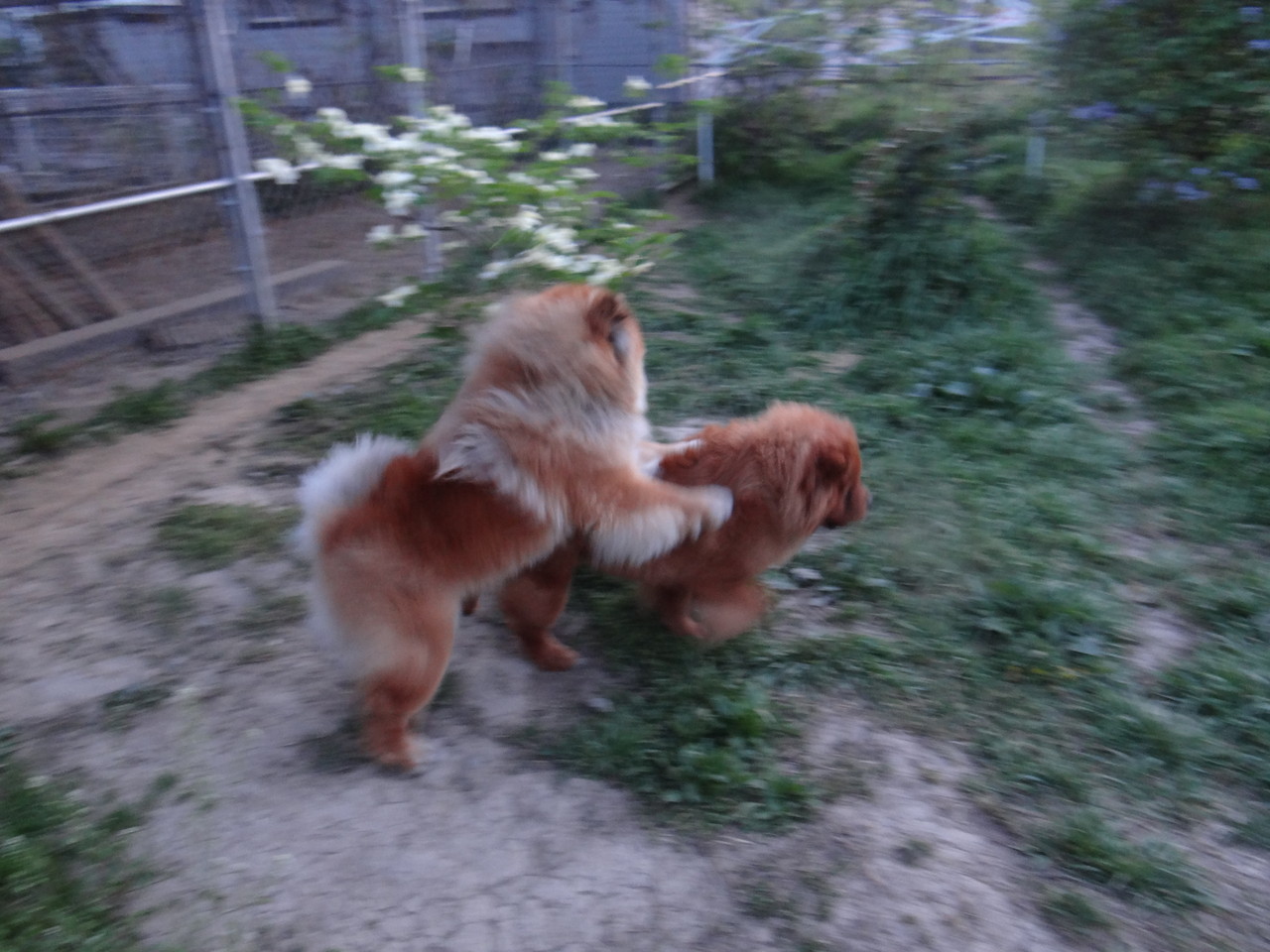 で、CHOBINを離すと、フェンスで残念そうです。