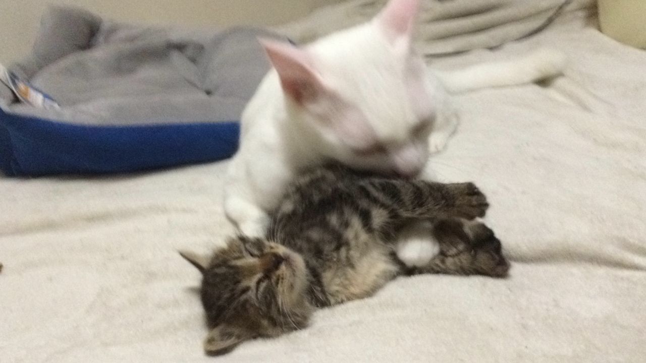 ちょっと加減が解らないが、おそらくは母猫もこれくらいはするだろう。