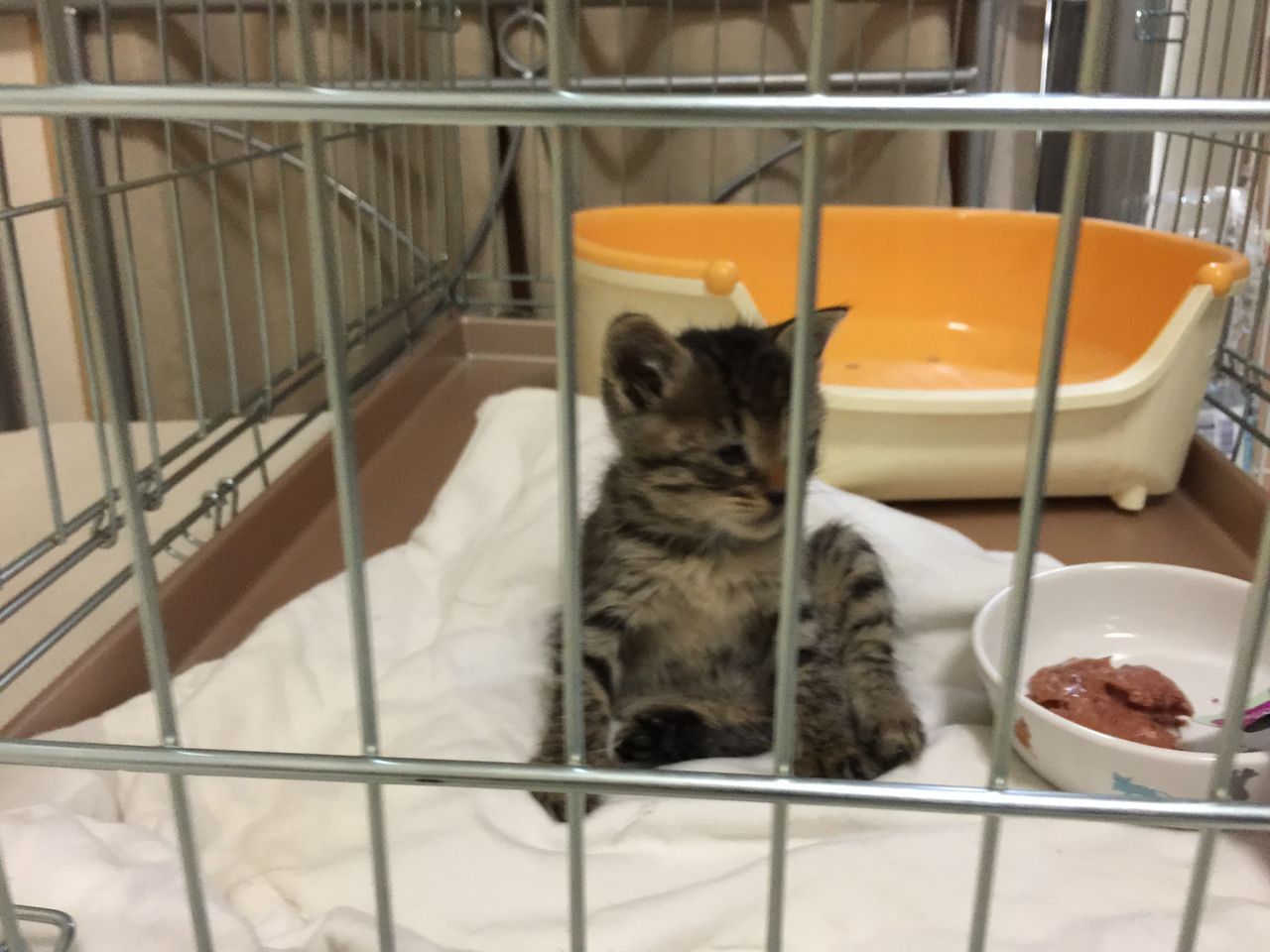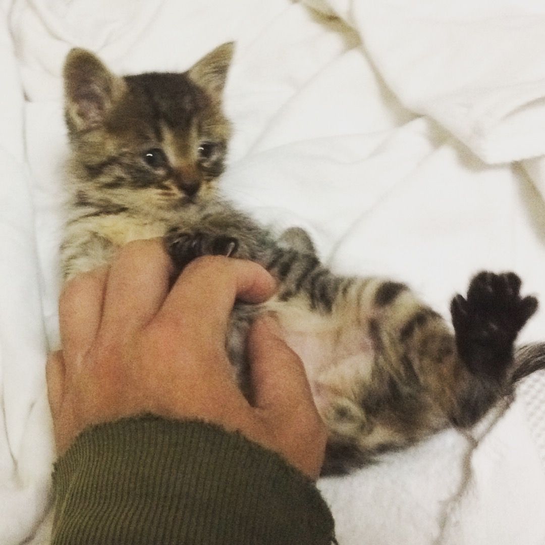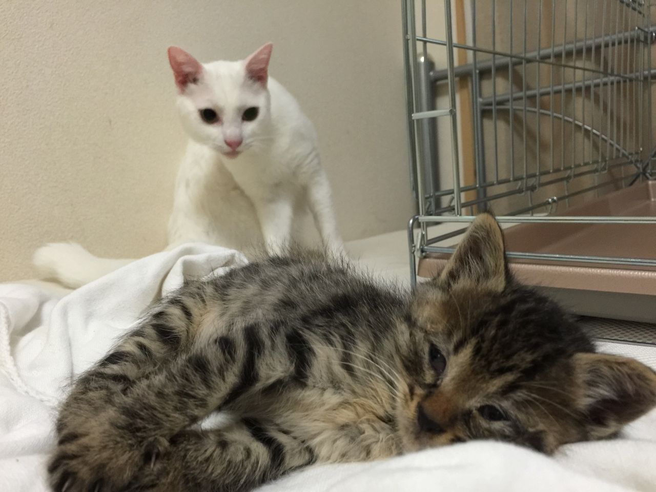 時折エキサイトしてかみついて子猫、抗議の声をあげる。