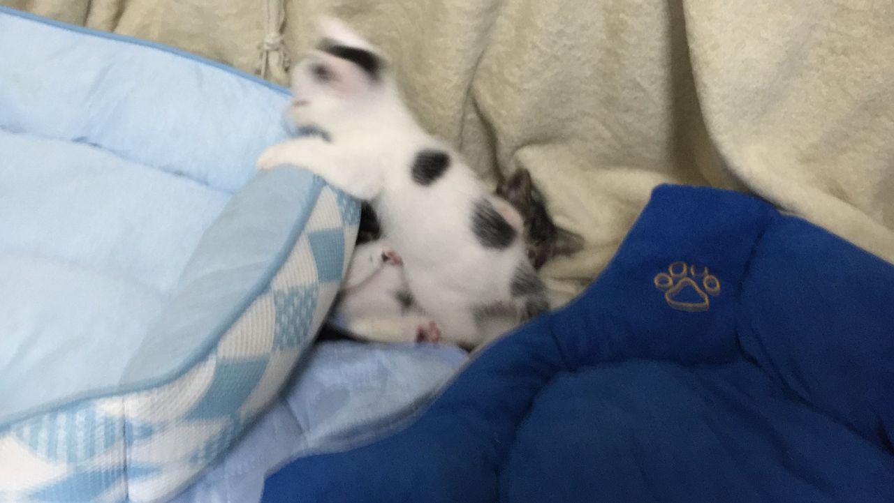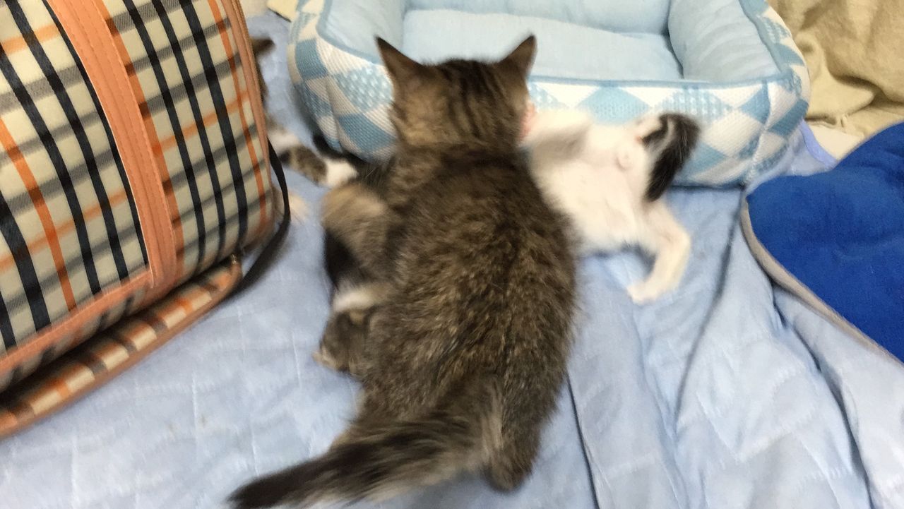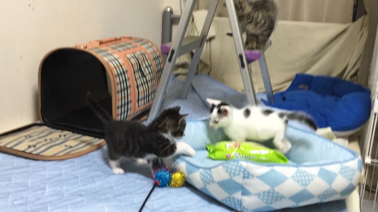 平日のリズムも子猫たちはだいぶ掴めたみたいで、ドアの音がして電気がつくととたんにみゃー!と騒ぎ出す。