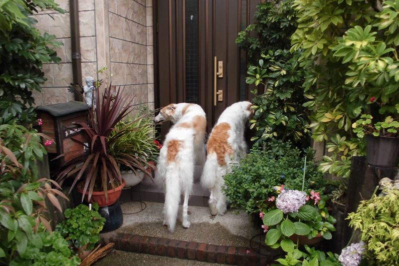 『早くドアを開けて』と待っている、カイ君ユリさんである