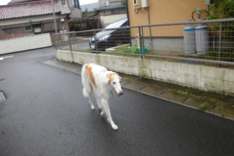 2頭のボルゾイを連れたカイ父は、急いでその場を後にした