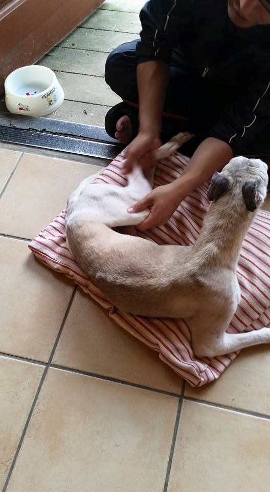 今日は義足の一歩が整体に行って後足のリハビリをしている