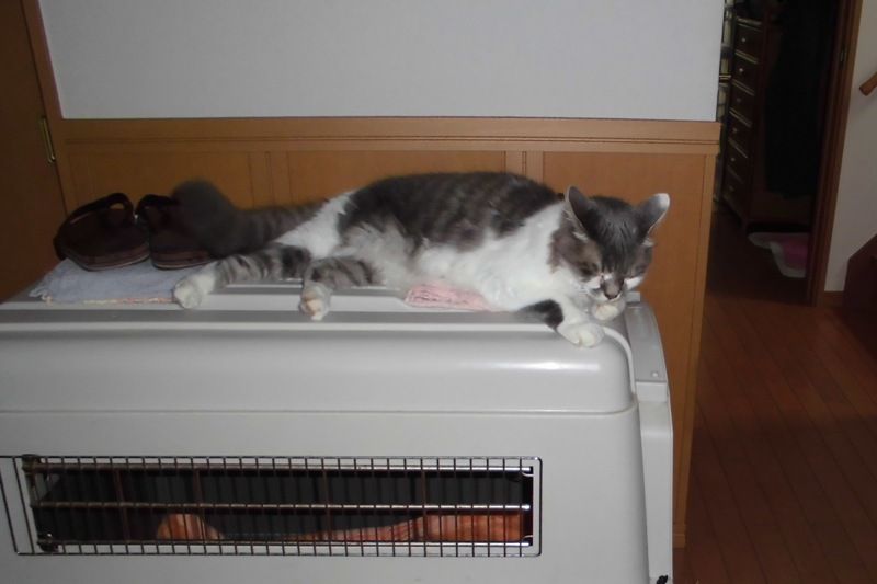 銀次、近頃のお気に入りは廊下に置いてあるバリケンの上