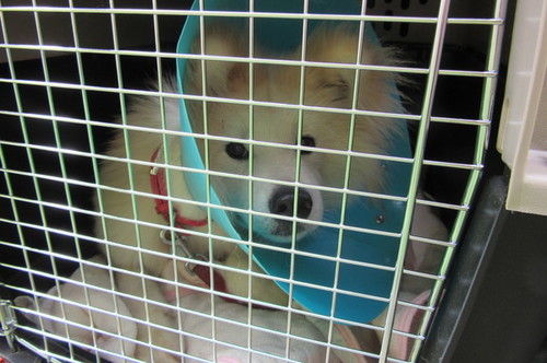 血が止まりにくいので、抜糸まではサークル生活ですが