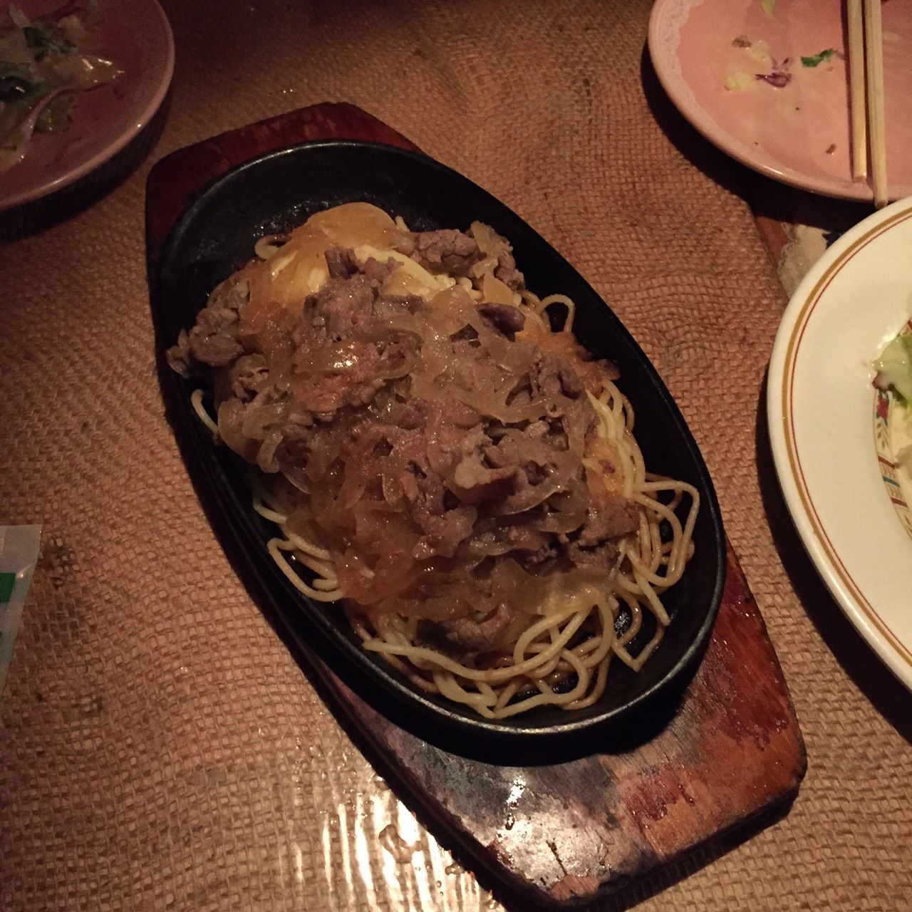 当店名物[ハンター焼き]~オリジナル牛肉の炒めパスタ~