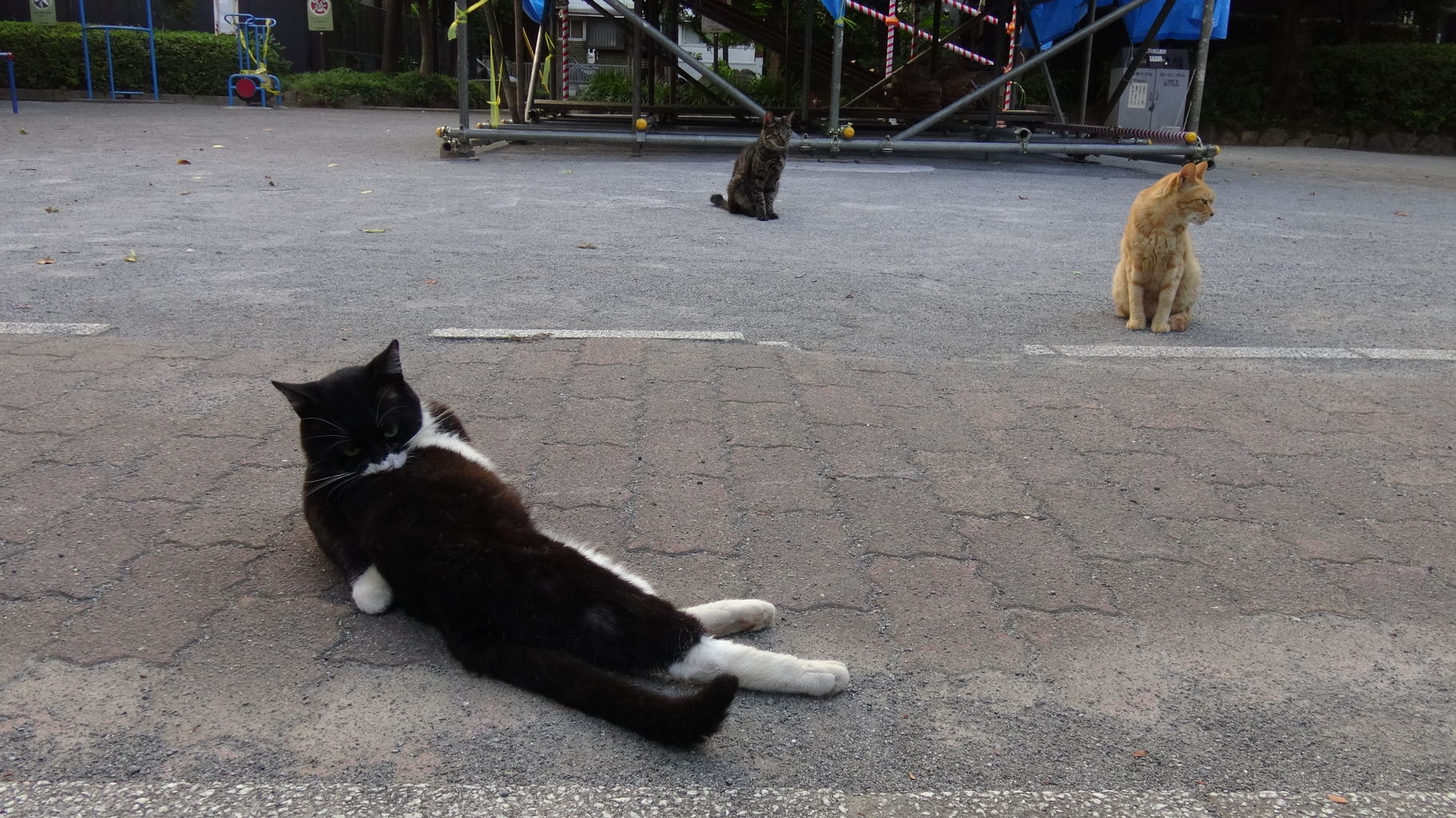 ある一コマから。 猫たちが集まってます。これは集会…? いや、呉越同舟です。 それでも余裕をかます猫。 これは集会の意味合いが強い一枚。 ランキングに参加しています。1日1クリック、なにとぞ おねがいしますm(_ _)m