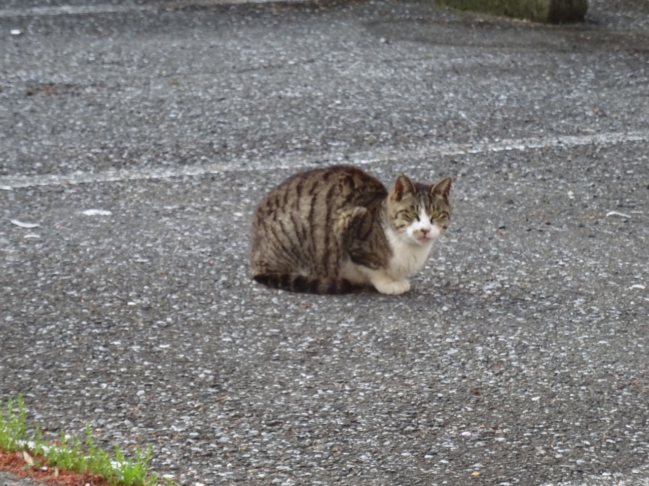 近くの駐車場でそれを見つめていたカツオの母猫。