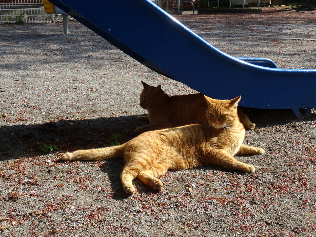 だいぶ公園にも慣れてきた。我が家のように振る舞う茶トラ兄。