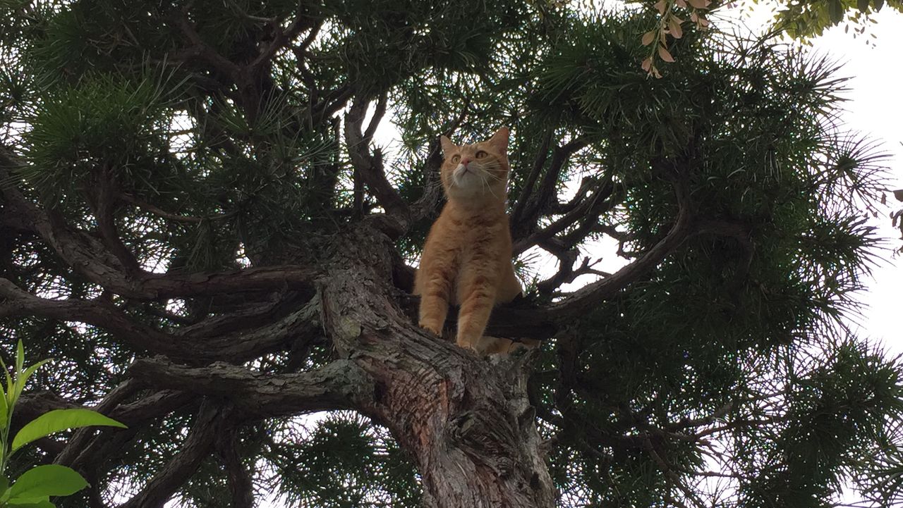 思えば茶トラ兄のメインの住居は戸建て住宅の集まる所でだいたいいつも屋根の上などで過ごしているようである。登ること自体はお手の物であった。