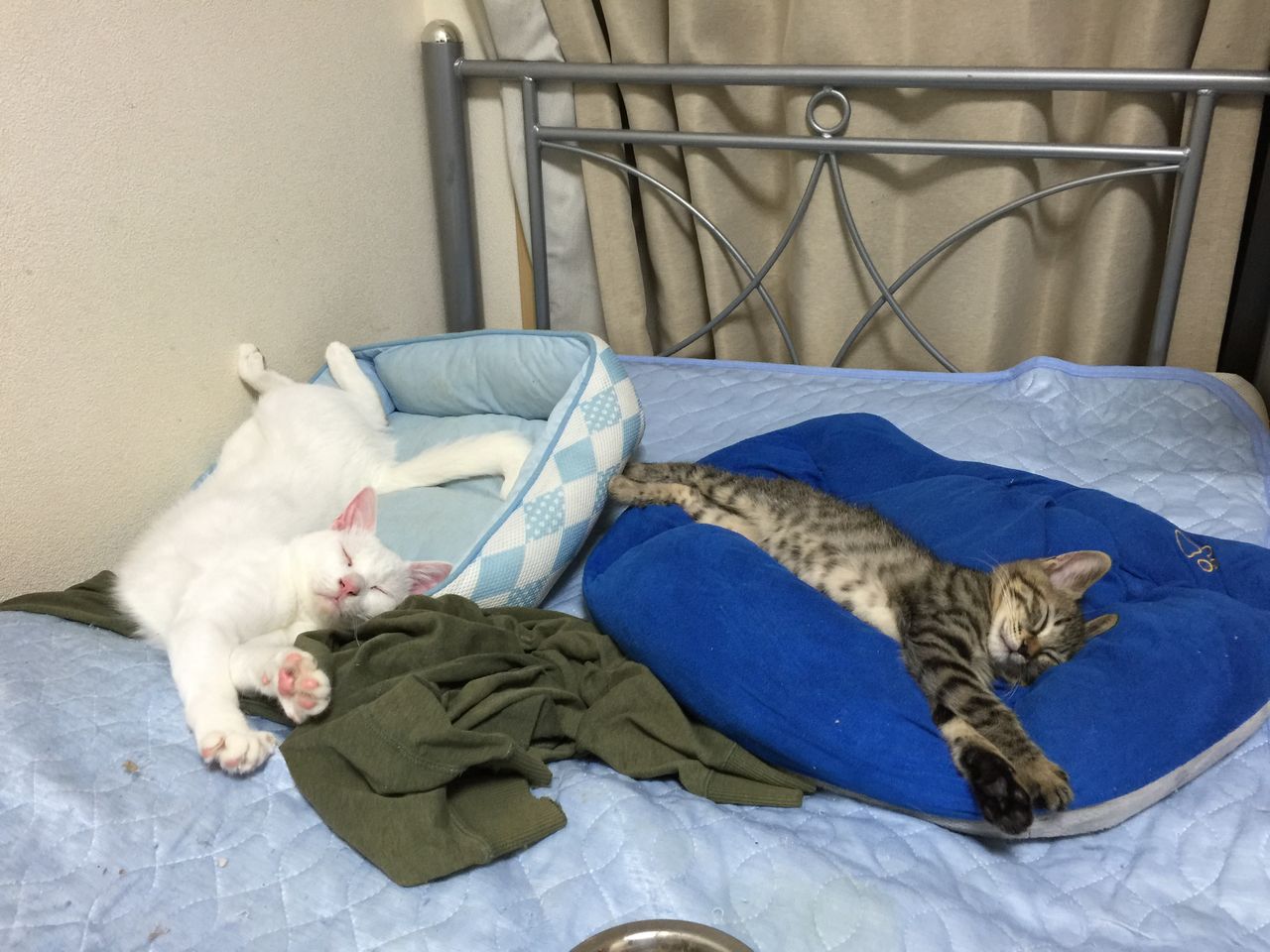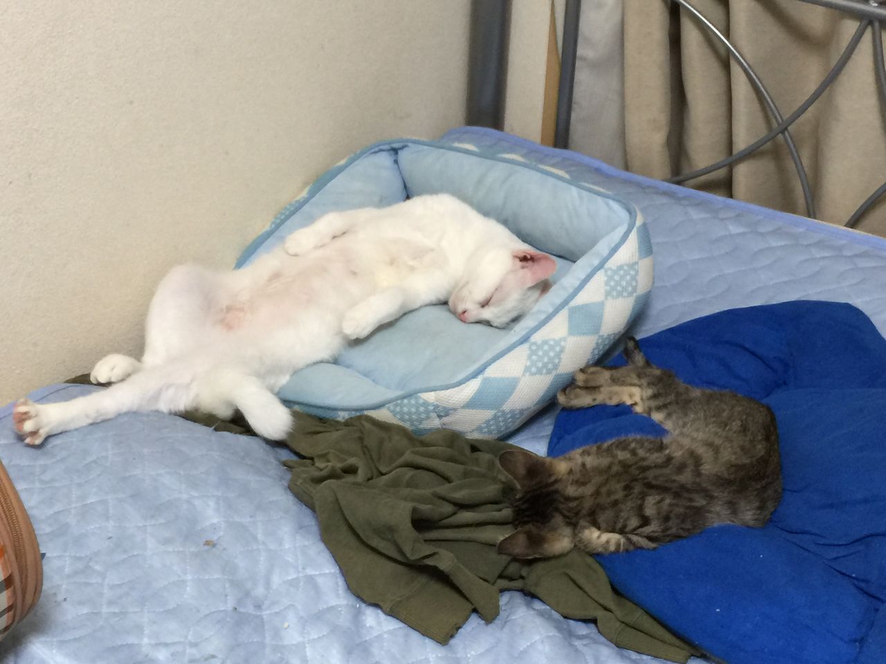 一方、玄関の向こうの部屋では二匹が伸びていた。