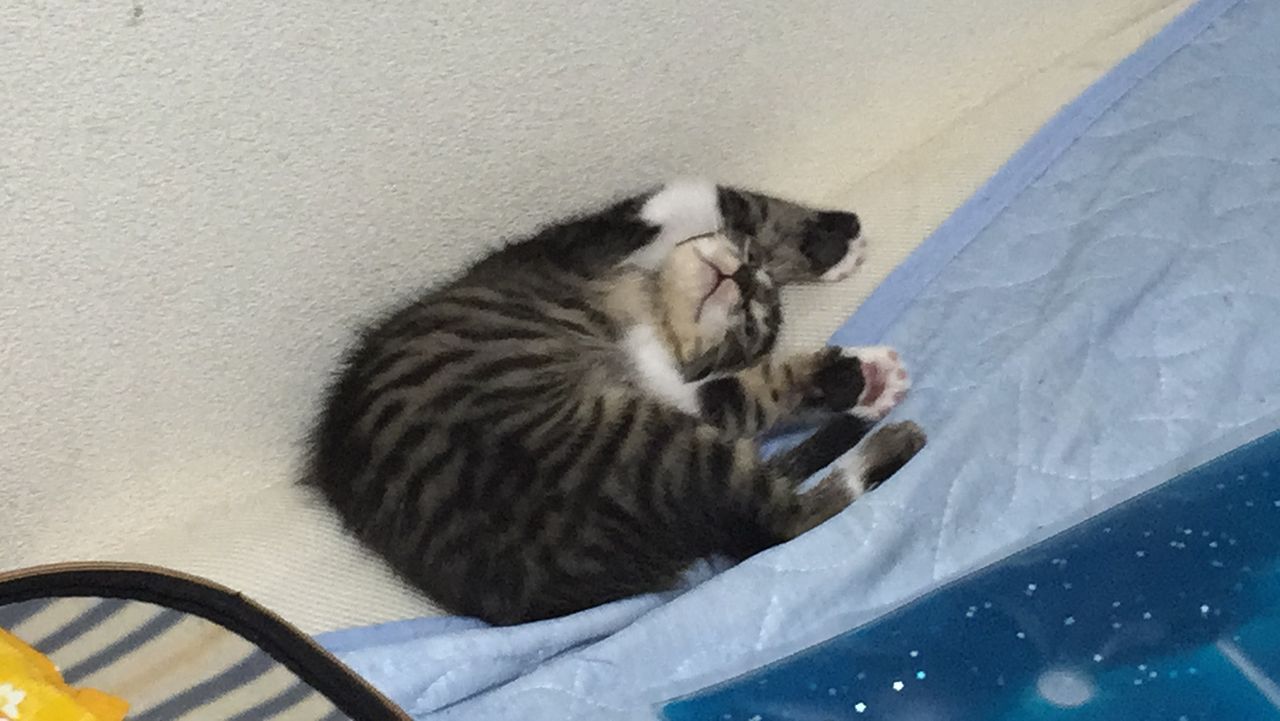 遂に保護子猫3兄弟の最期のひとり・栗介も里親さまの元へ旅立つ前日を迎えた。