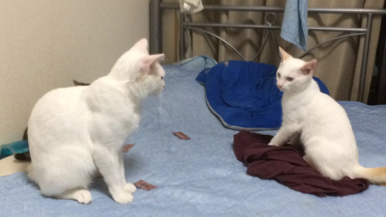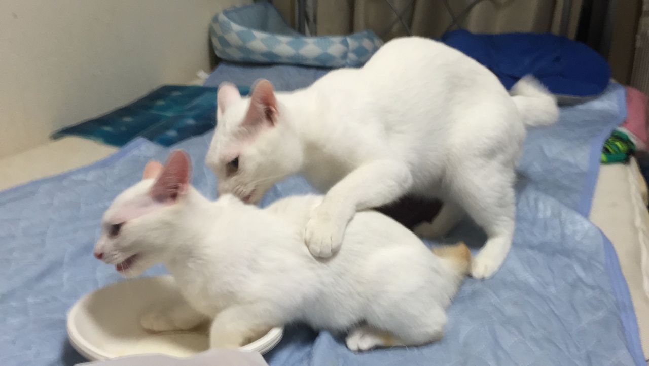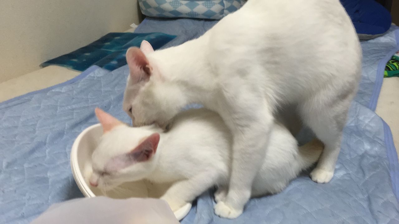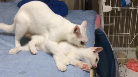 マウンティングしたかと思ったらグルーミングをする麿白。