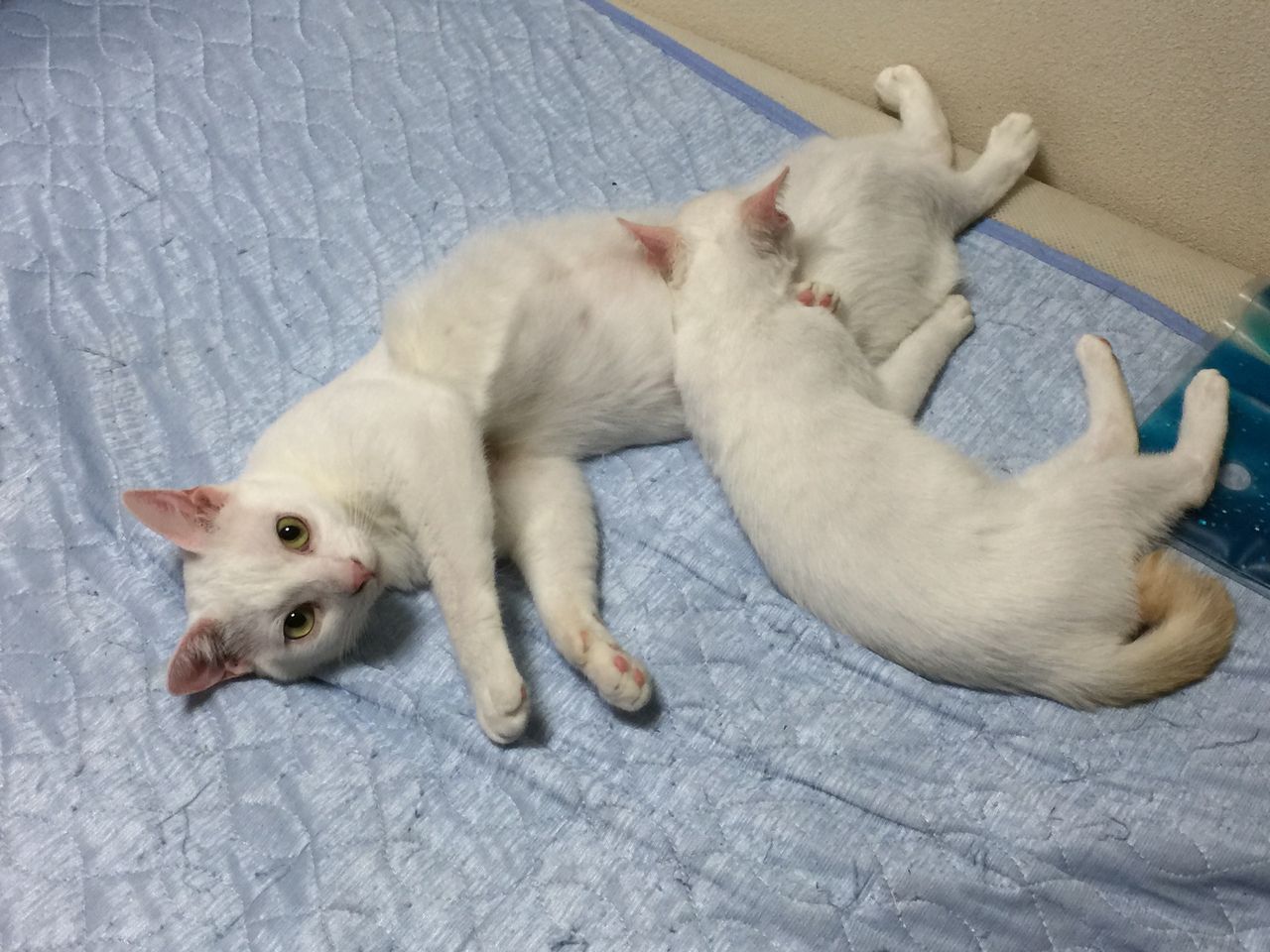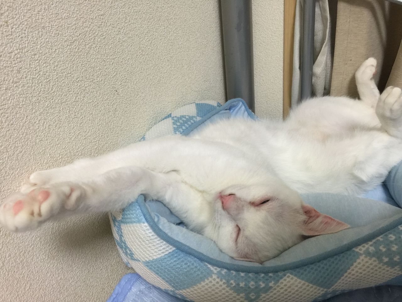 そう、いくらなんでも麿白のこの寝相は子猫たちには難しかろう…おとなになってもやらないだろう、敢えて。