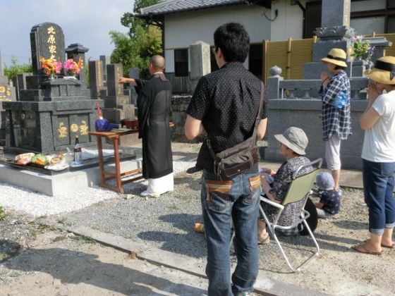 今日は、無事に新しいお墓の魂入れが済んで、仮置きしていたお骨の納骨が無事済みました。 朝8時には、お供え物の準備を整えて、和尚さん待ち。 8時半からお経が始まったんですが、早朝だというのに既に凄い暑さで、和尚さんも汗だく状態で、大変申し訳なかったです。 おかげで無事に済みました。 これで、安心して初盆を迎えられます。 そいぎ 下のブログ・ランキングに参加中です。下のバナーば1回"ポチッ"ち協力してね。