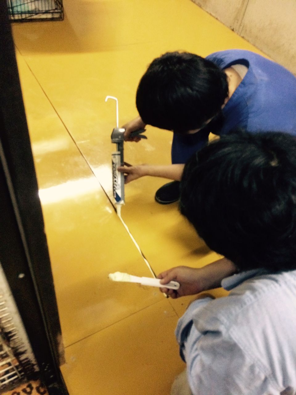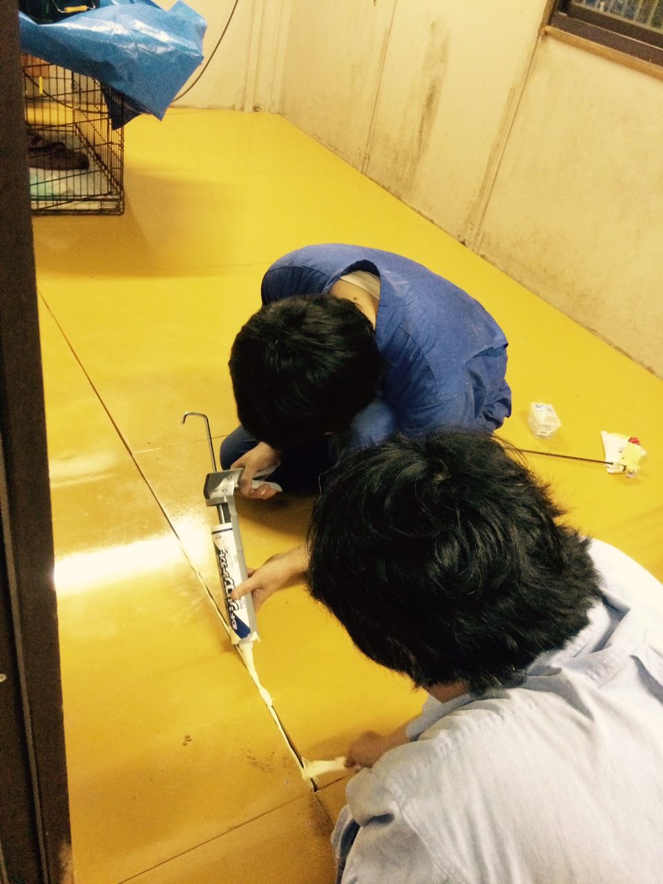 コンパネを買い 隙間をコーキングをして その上に重量用の フロアシートを買って敷きます