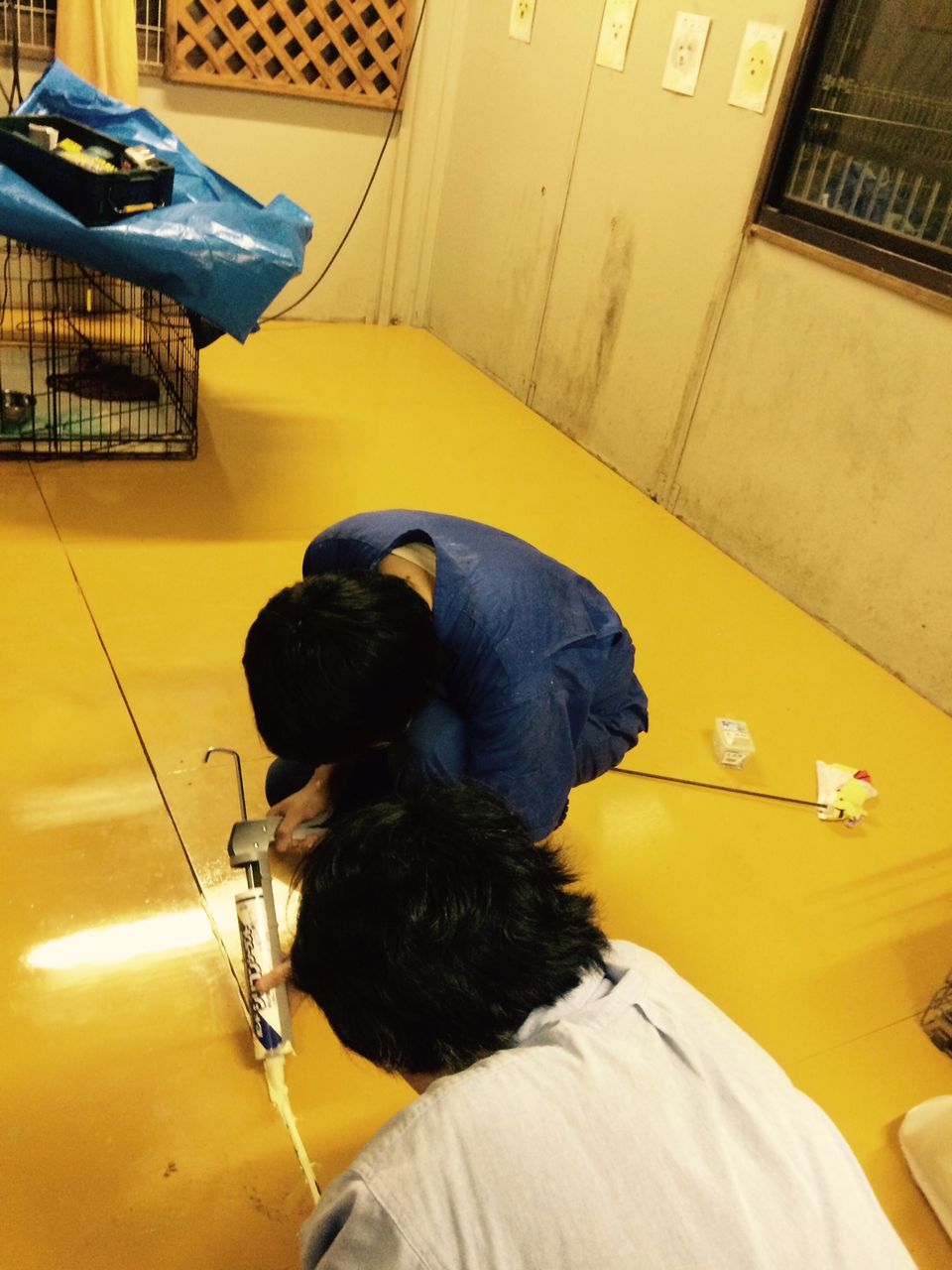 柵もボロボロに オシッコで錆びてしまい 今回 平日修繕チームの精鋭が、、、(⌒-⌒; )