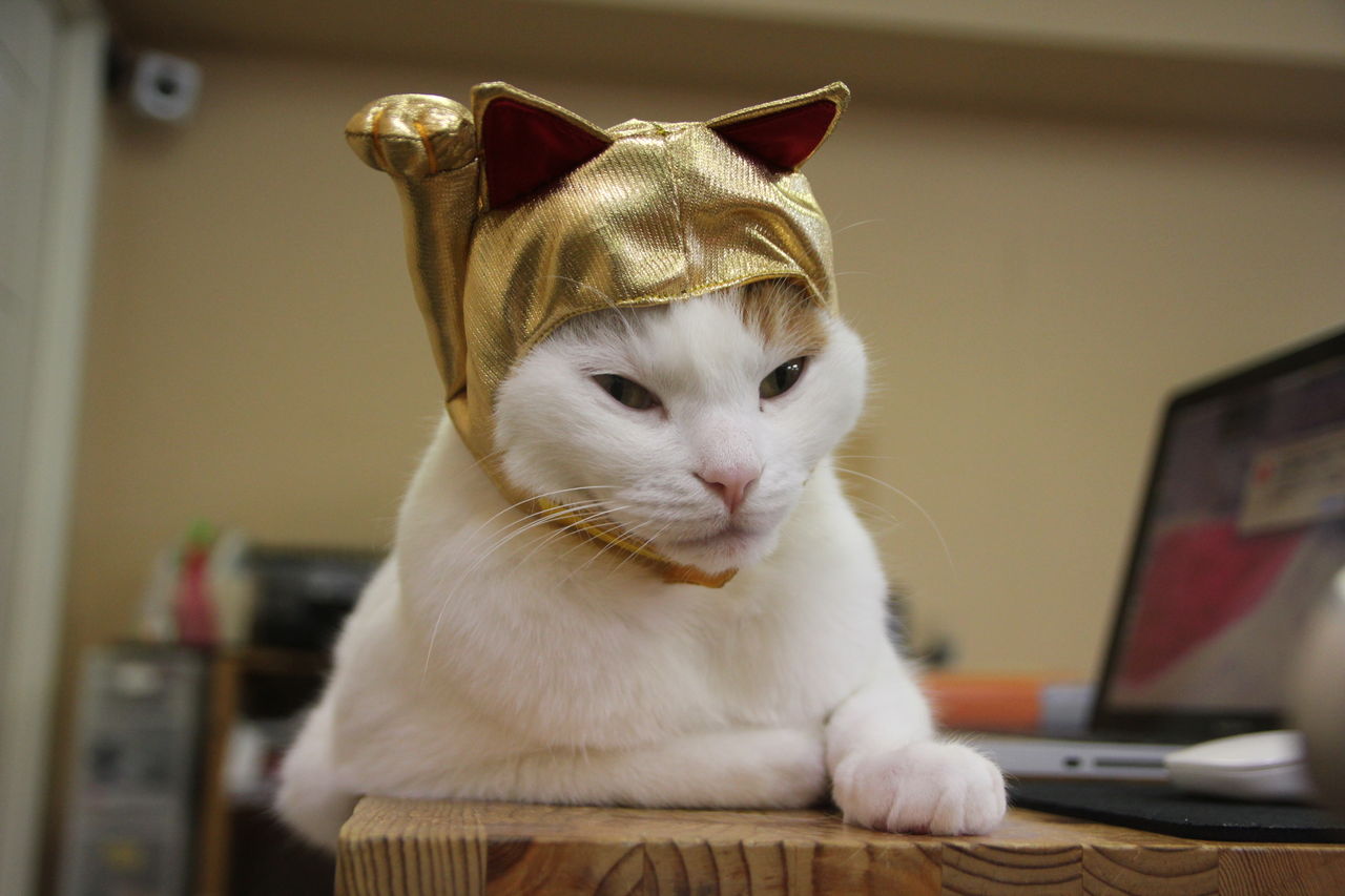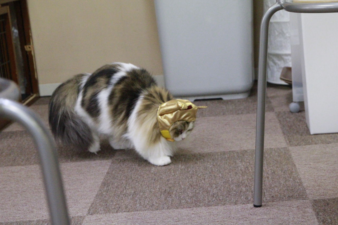 先日お客様がプレゼントしてくれた帽子…!招き猫!しかもピカッピカッ!