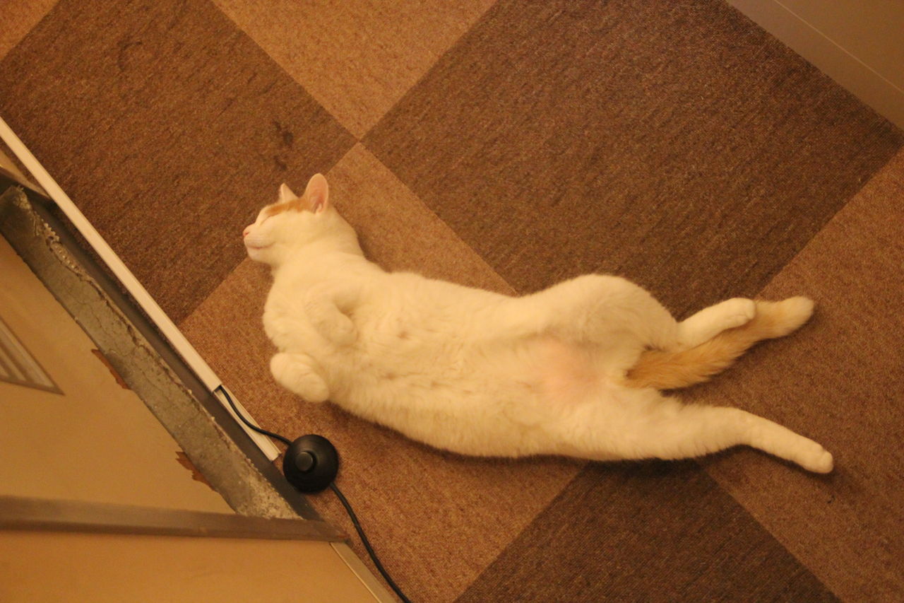 お客様が少ないときなど結構フロアで大胆な格好して寝ている時もあります。