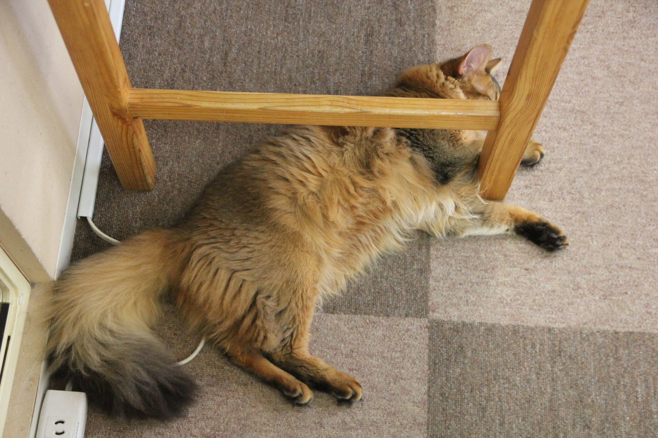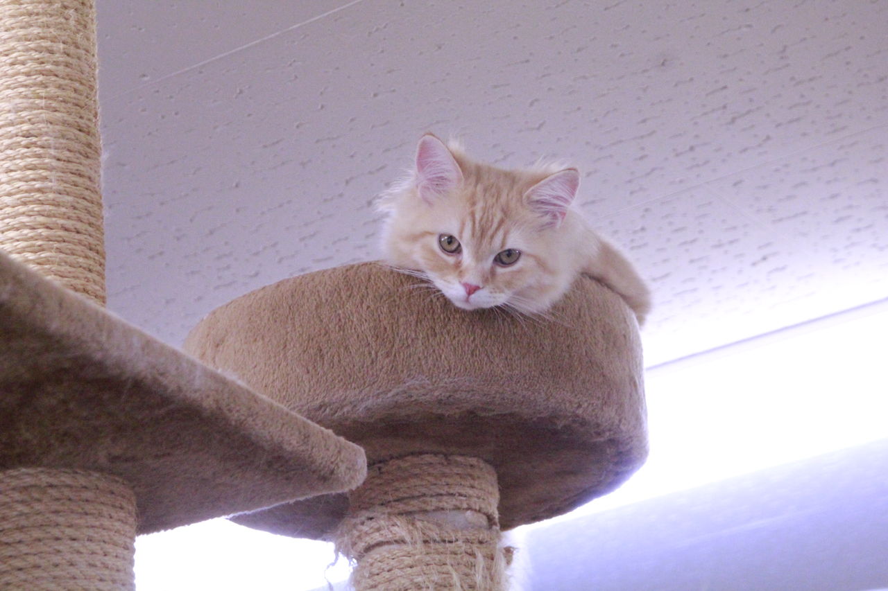 眠くなったら絶対人の手が触れにくいところでくつろいでいます。