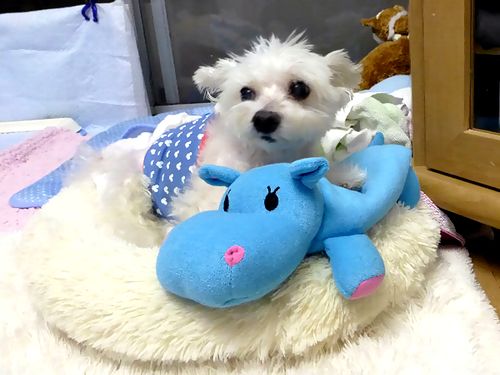 ラッキーは,病院に入るとおもらしです。(マナーベルトがずれていた)