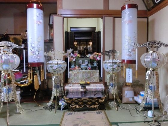 もうご近所さんが、初盆参りに来られよっけん、早々に盆飾りばしました。