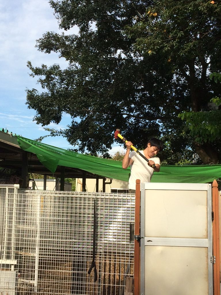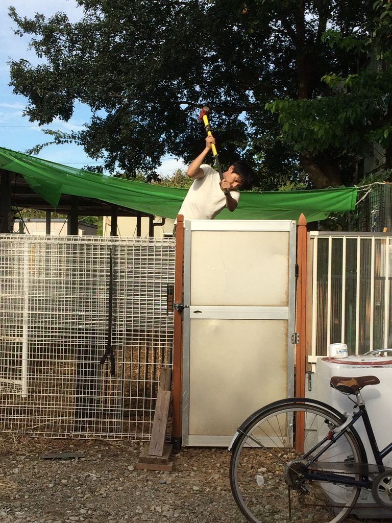 今日も 壊れた柵の 補強で杭を打ち込んでいます