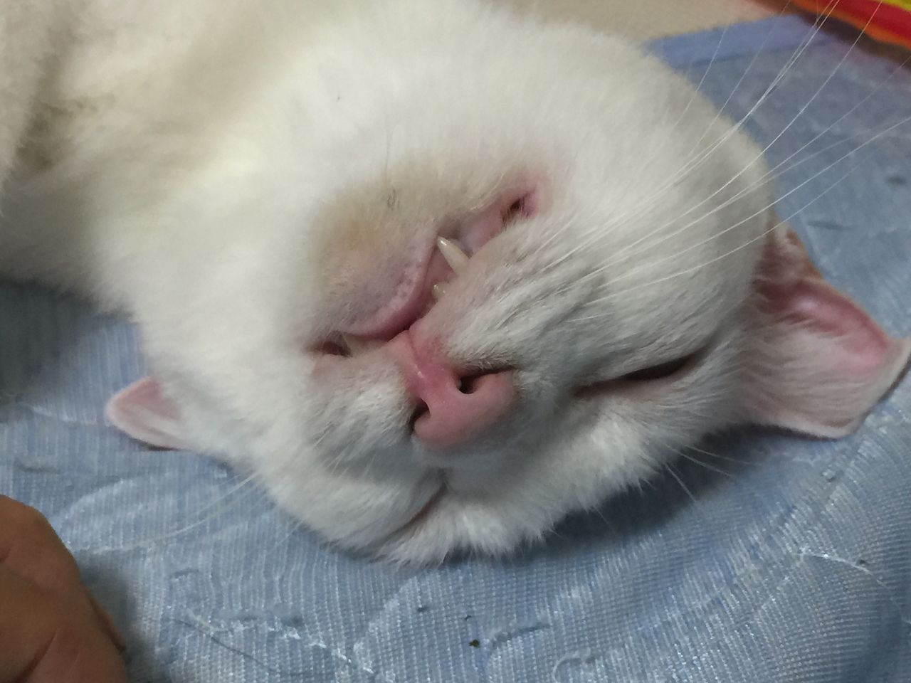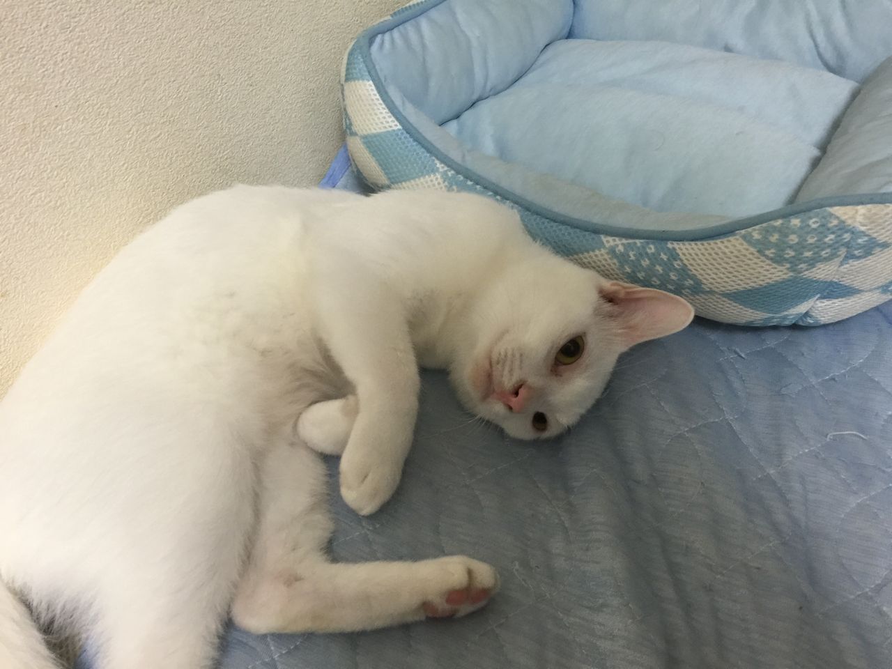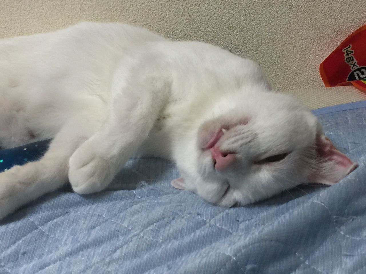 起き上がっても謎の放熱の姿勢をとる麿白。