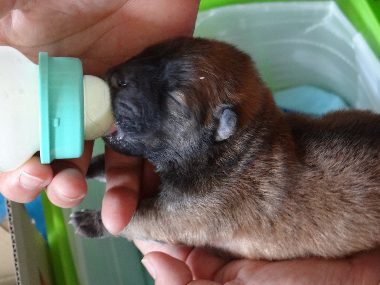 子犬部屋で育てます。早期離乳は特別な事情を除いてはしません。