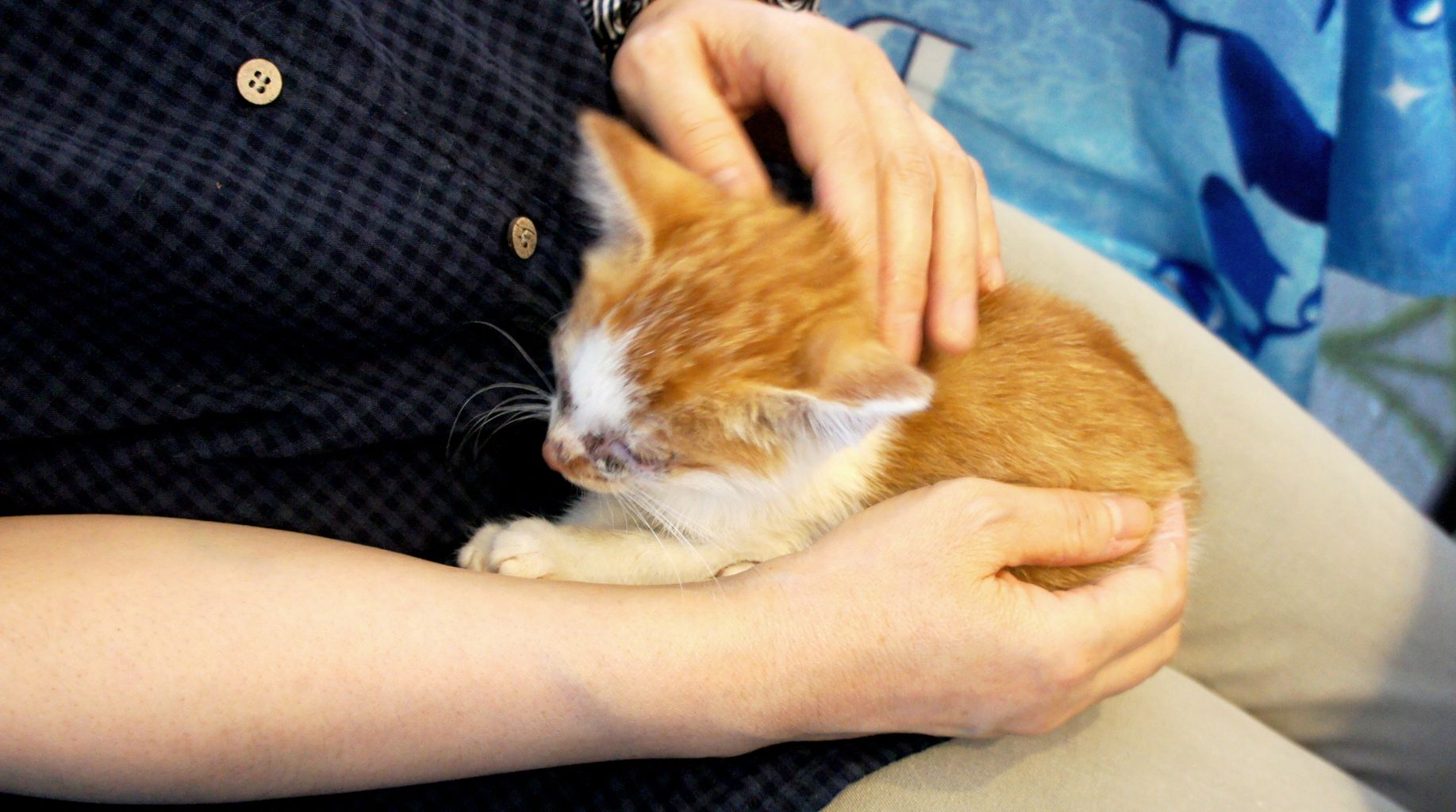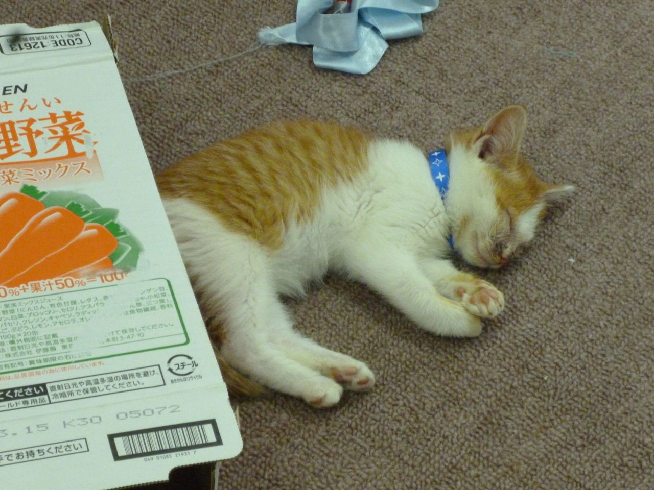 遊び疲れると、すぐにコテッと寝てしまう、かわいい子ネコでした。
