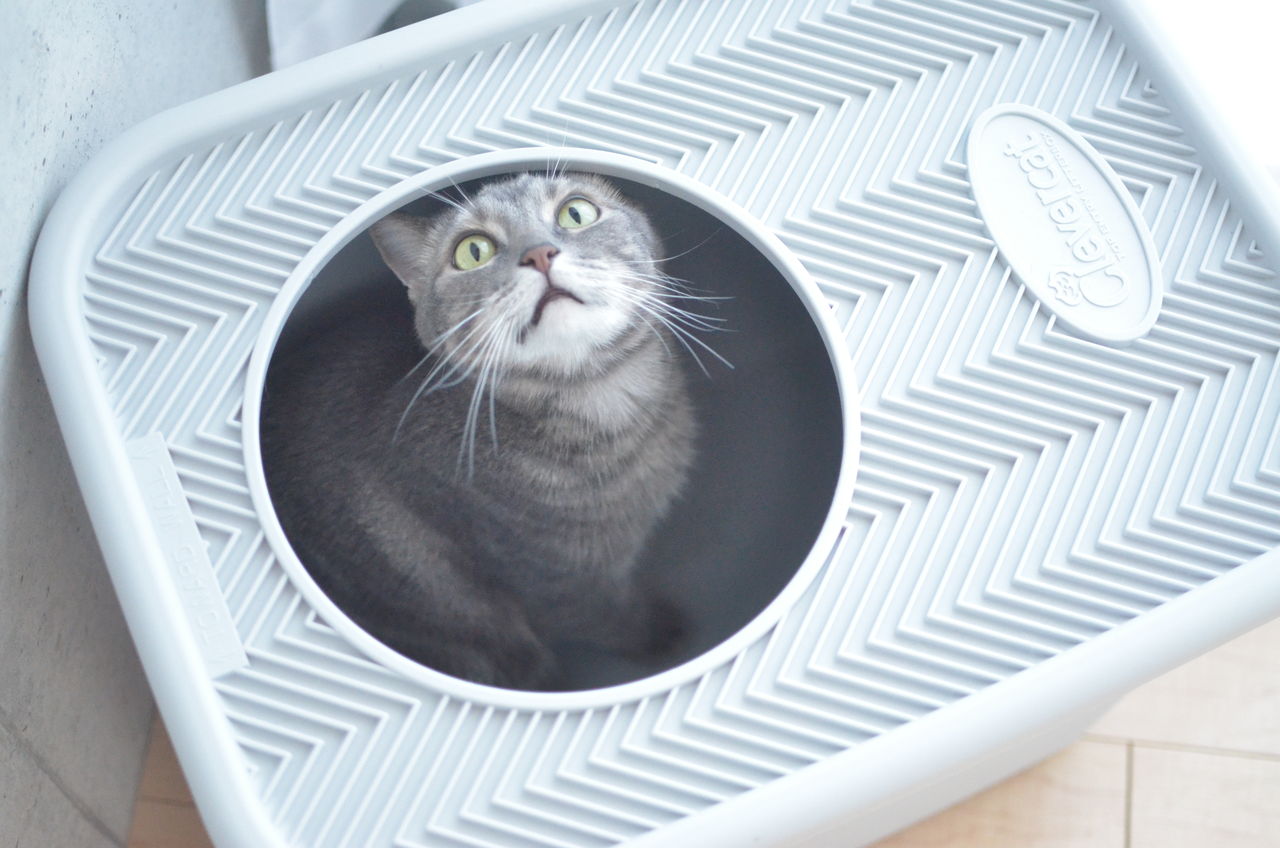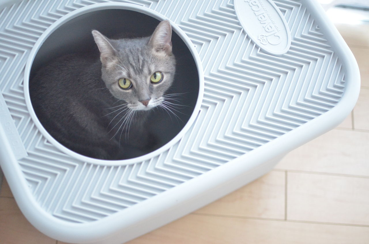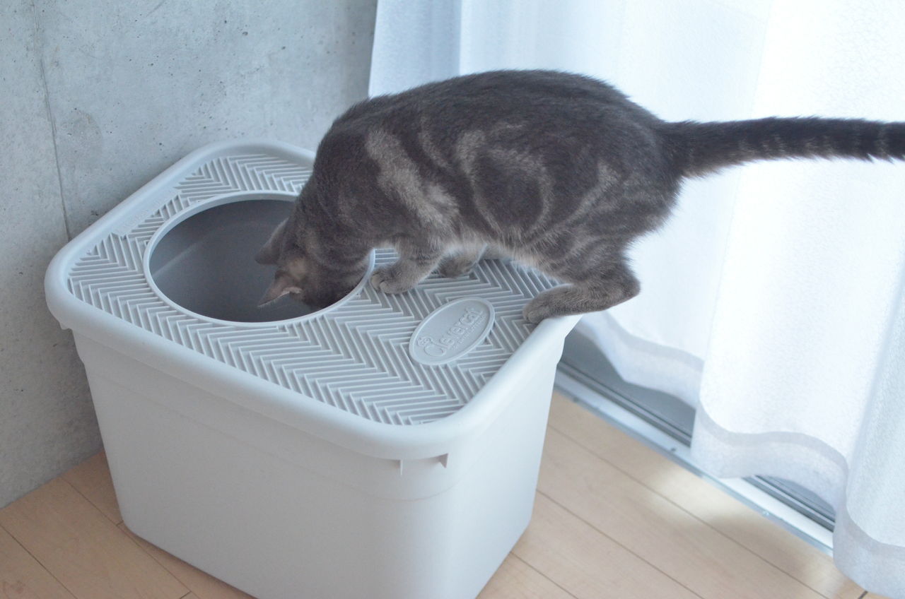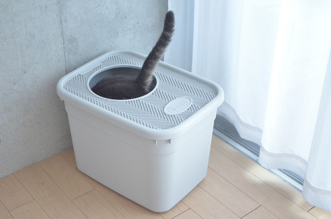 ( ・ω・)<上に穴が空いているタイプの猫トイレ、