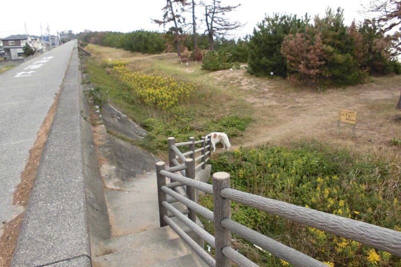 海岸を満喫して堤防に上がってきたのはユリさんです