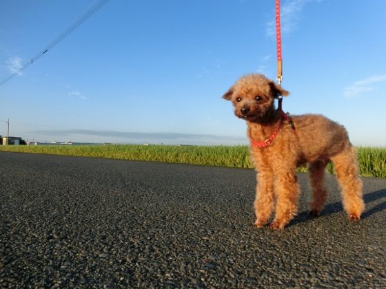 クララちゃん、避妊手術後の抜糸も済んで、まだ保護シートの痕が赤くしとっばってん、こいで安心ね。