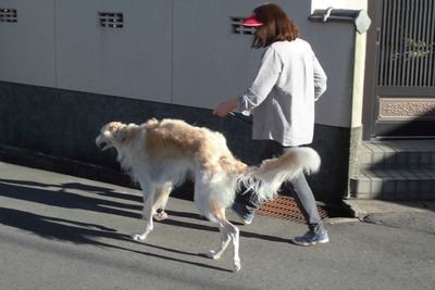 昨日の散歩のときに、ユリ母が陸ぼんをつれて歩く姿を横から見ました