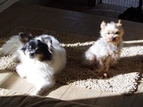 朝、出がけに、ピーちゃんとルルさんがいっしょに日向ぼっこしていた。