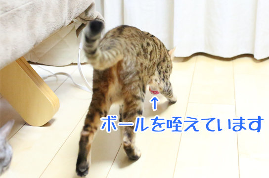 おもむろに後ろ足の間にボールを置いて