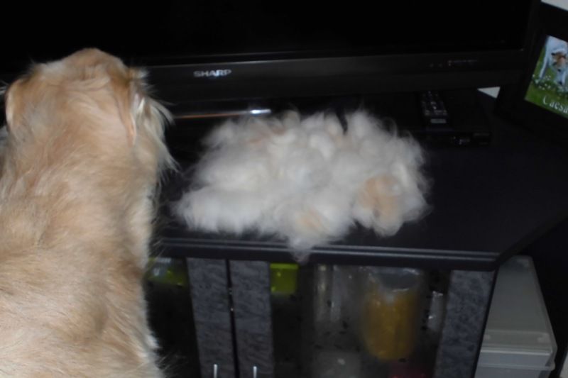 カイ君のブラッシングで大量の抜け毛を回収保存した