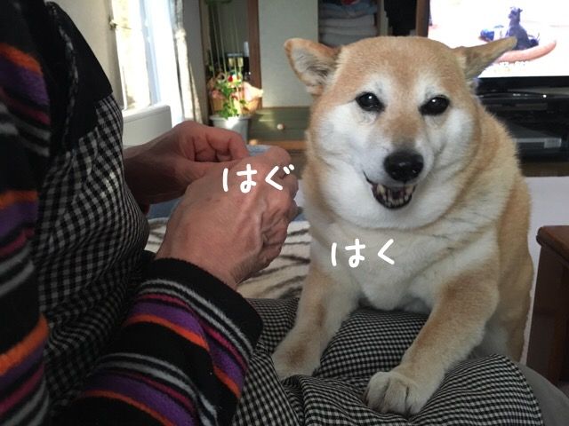 この日もご機嫌でオヤツを頬張るカン子ちゃん‥