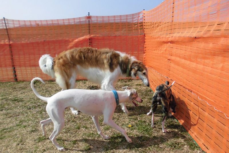あたりを見渡すと、ランの一番奥にボルゾイ発見