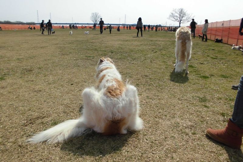 他の犬が近づくたびに腰砕けてフニャフニャ(笑)