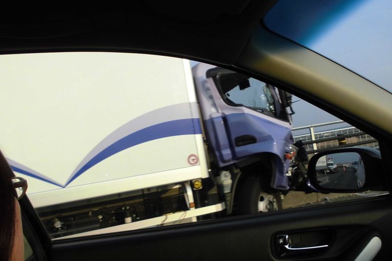 事故で1車線をふさぐトラック